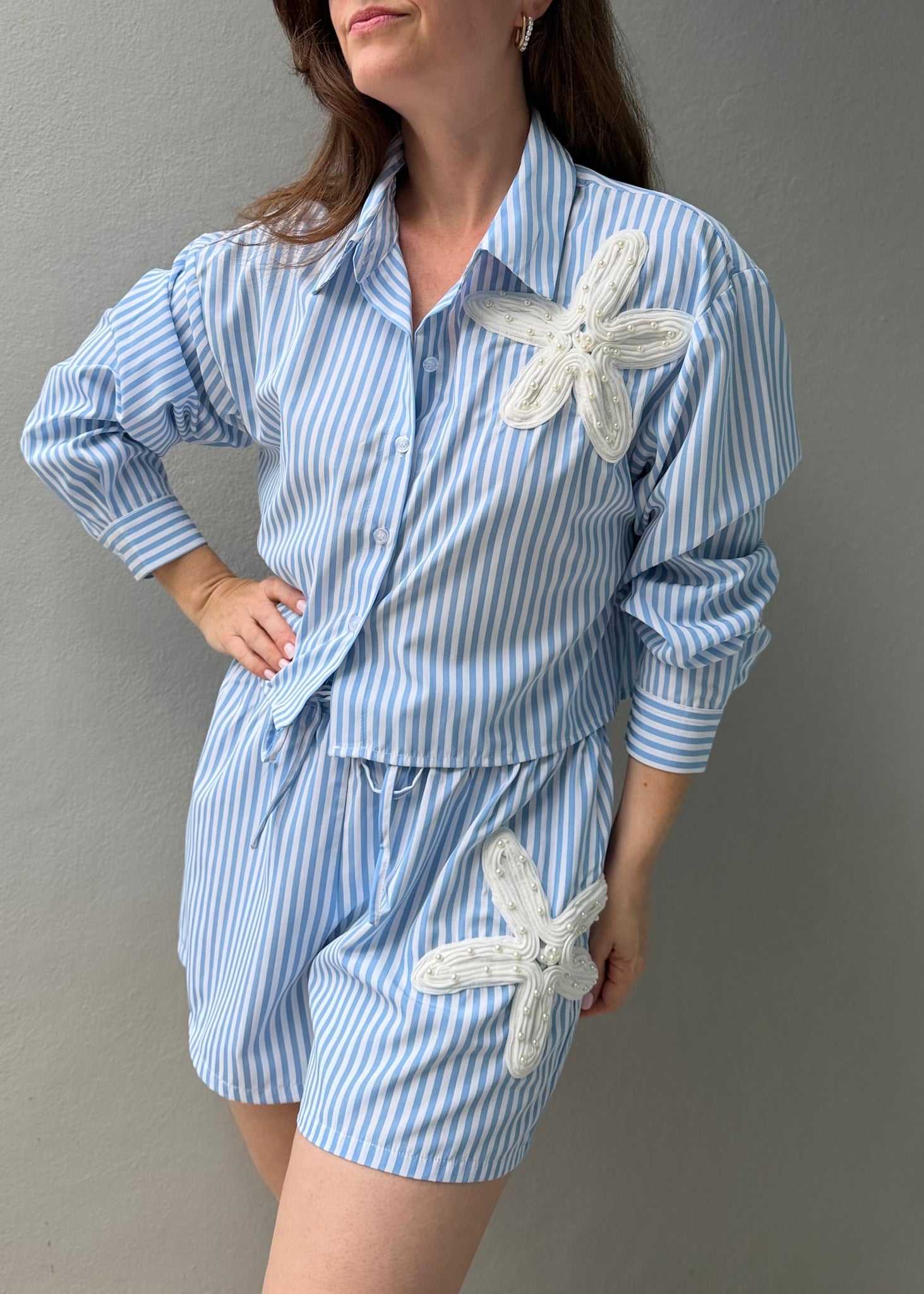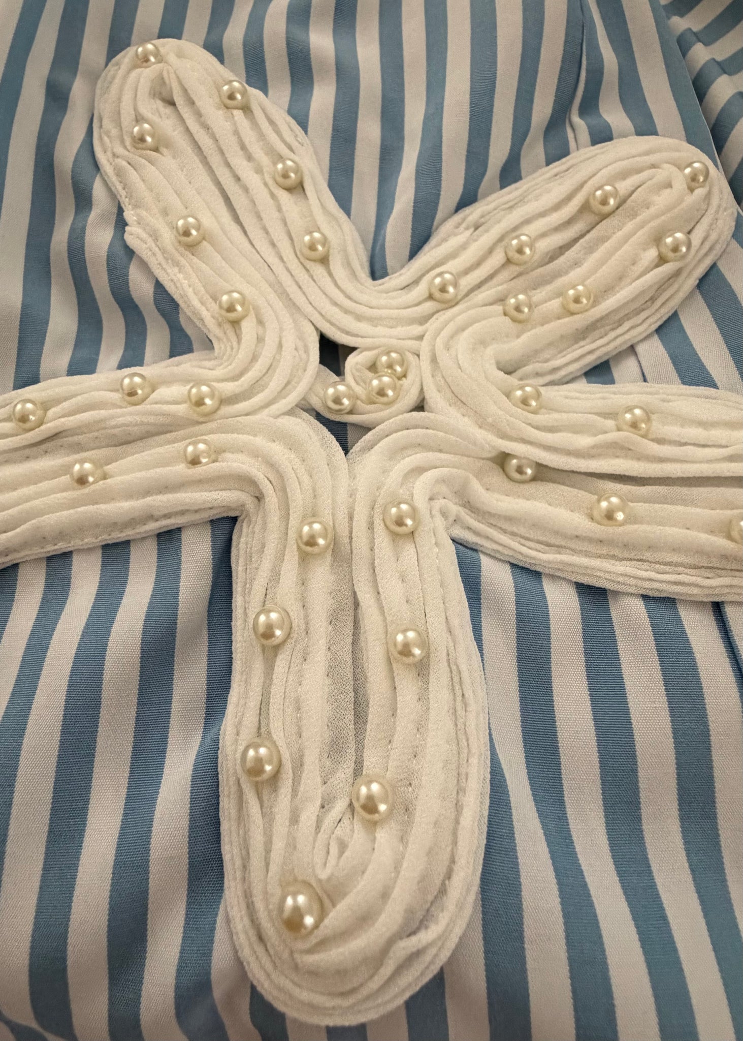 Crafted from lightweight polyester in a serene light blue hue, this two-piece set offers effortless sophistication. Runs true to size for a polished appearance!